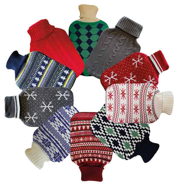 De caucho natural 100%. Con cierre hermético y recubierto Suavidad al tacto. Calor natural y confortable. Capacidad: 2 litros. Diseños surtidos. Con funda EN TEJIDO DE LANA.